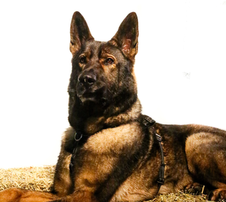 1. The neck strap, which runs along the base of the black fabric breastplate, should fit around the neck but under your dog's existing collar. Once attached, the strap should rest at the base of the neck and rest just above the shoulder. The black triangle of fabric should be positioned on the sternum. A strap too high on the neck could cause injury to the cervical spine, thyroid, etc.